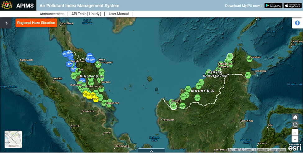 Rujuk bacaan IPU secara langsung di laman web rasmi Sistem Pengurusan Indeks Pencemaran Udara Malaysia (APIMPS) menerusi link berikut: https://apims.doe.gov.my/home.html