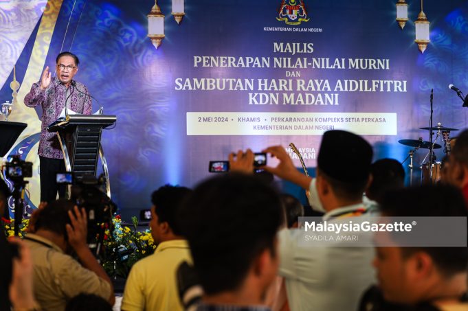 Beliau berkata demikian ketika berucap pada Majlis Penyerahan Dokumen Terma Rujukan Agensi Kawalan dan Perlindungan Sempadan (MCBA) dan penguatkuasaan mengenai kawalan dan perlindungan sempadan negara dan Majlis Penerapan Nilai-Nilai Murni dan Sambutan Hari Raya Kementerian Dalam Negeri (KDN) MADANI Tahun 2024, di sini, hari ini.