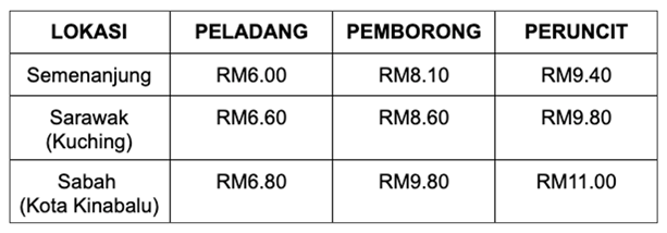 “Harga jualan di pasaran ialah RM9.40 untuk ayam standard. Kalau harga Sabah dan Sarawak, harganya berlainan,” jelasnya.